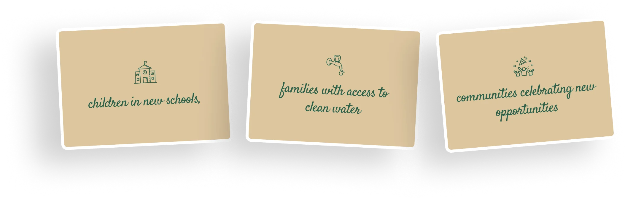 We will have photos of children in new schools, families with access to clean water, and communities celebrating new opportunities. This isn’t just our work; it’s our collective effort to build a better world, one family at a time.